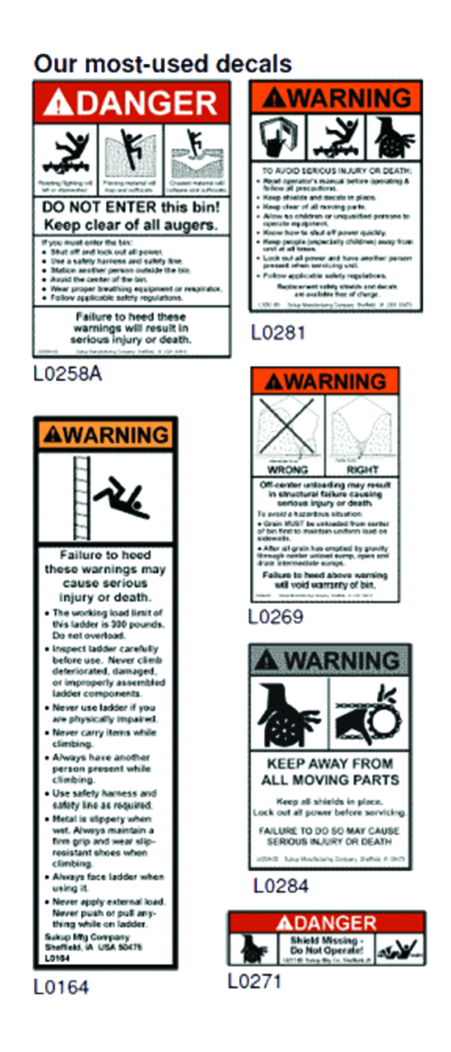 For quantities greater than 5, contact Sukup Manufacturing Co.